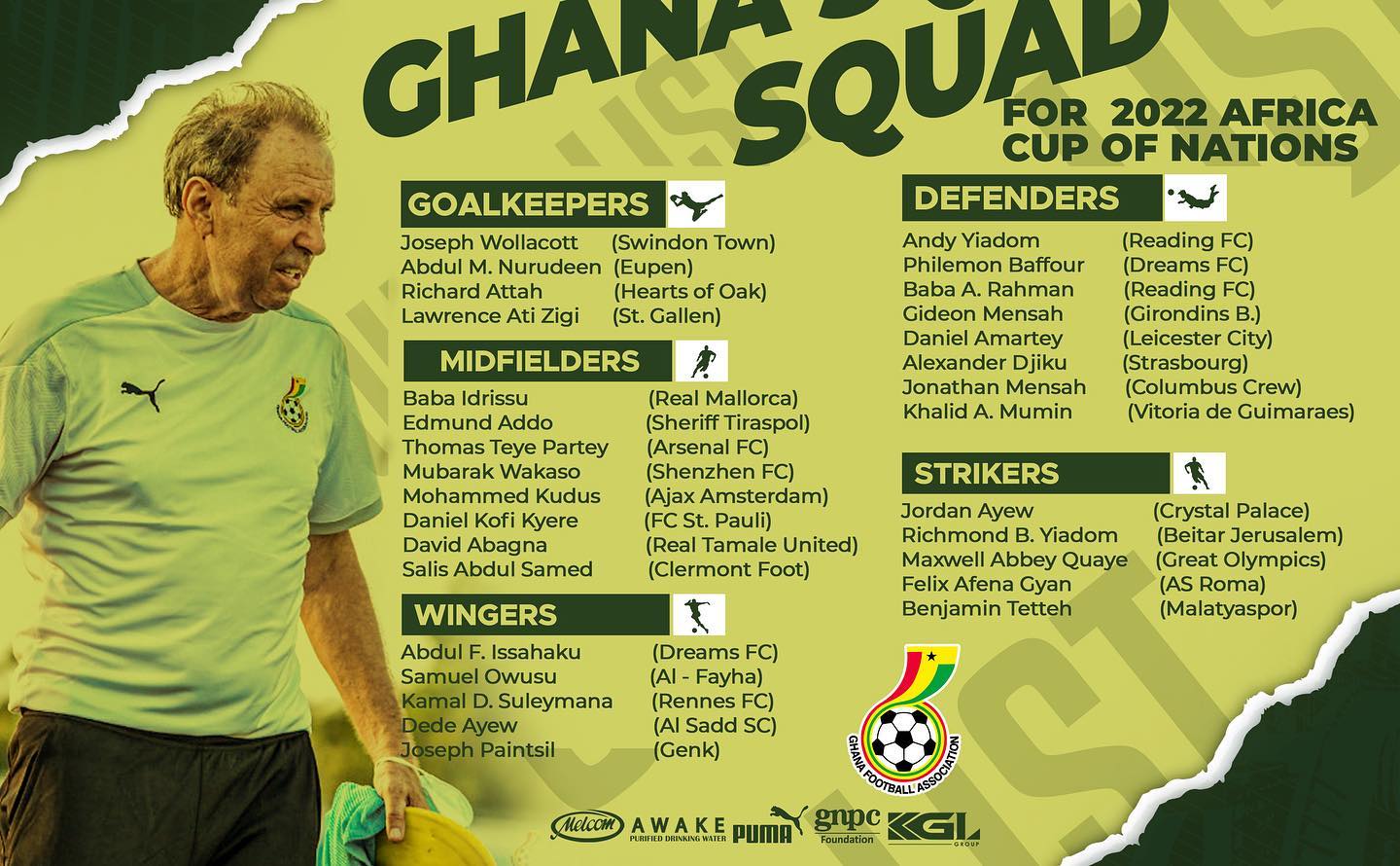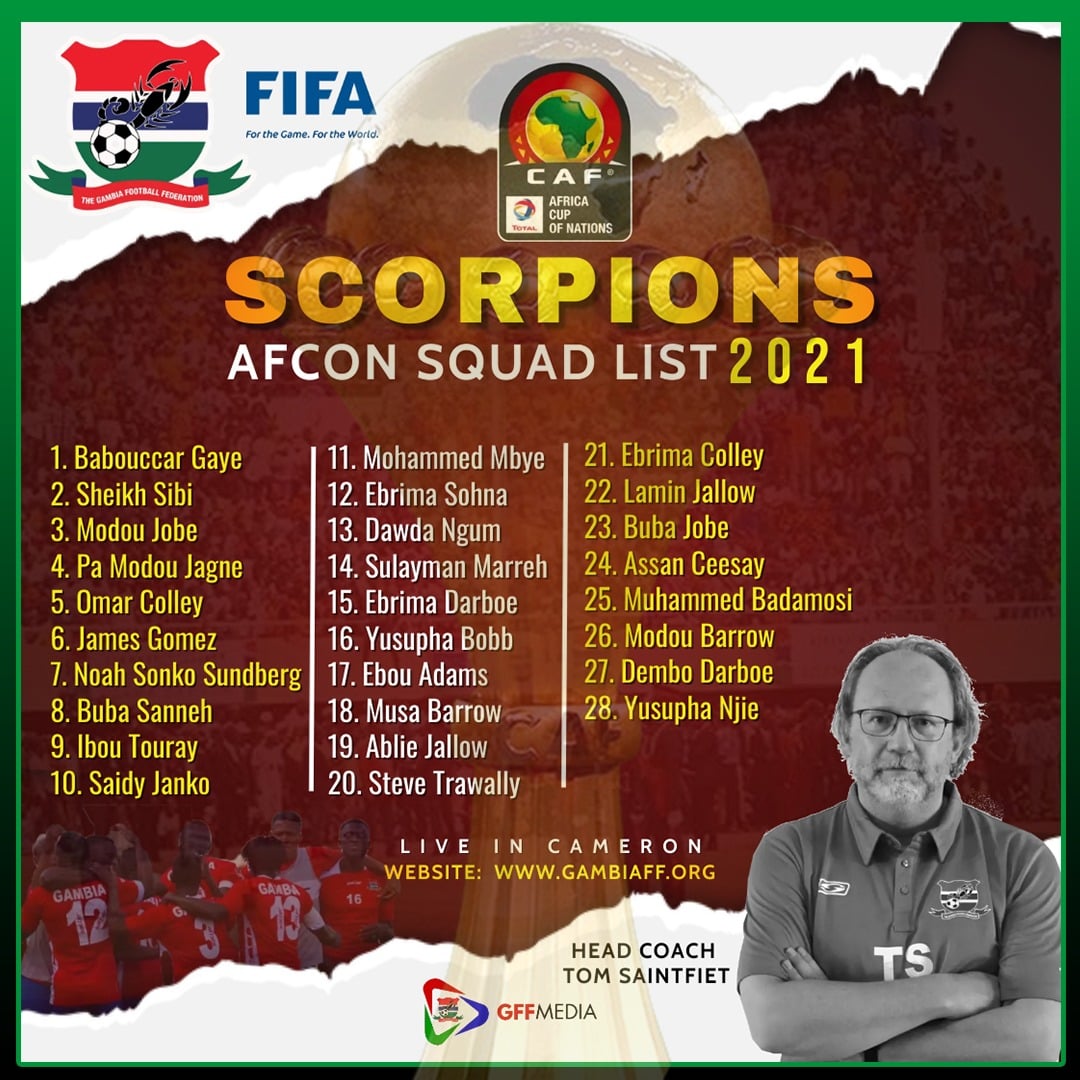 وأعلن الناخب الوطني الغامبي توم سانتفيت عن قائمة تضمّ 28 لاعبا، معنيا بِخوض “كان” الكاميرون. بينما تشكّلت لائحة الناخب الوطني الغاني ميلوفان راييفاتس من 30 لاعبا.