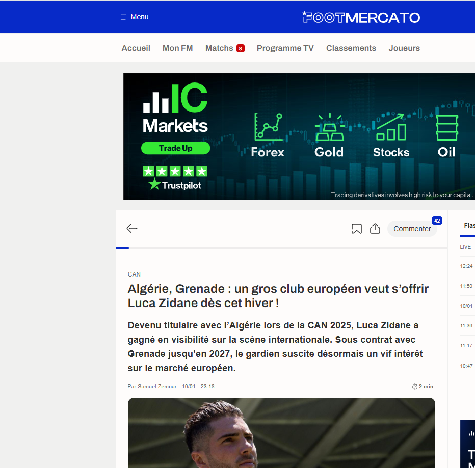 أكدت تقارير إعلامية أن هناك عدة أندية تريد ضم حارس المنتخب الجزائري، لوكا زيدان.