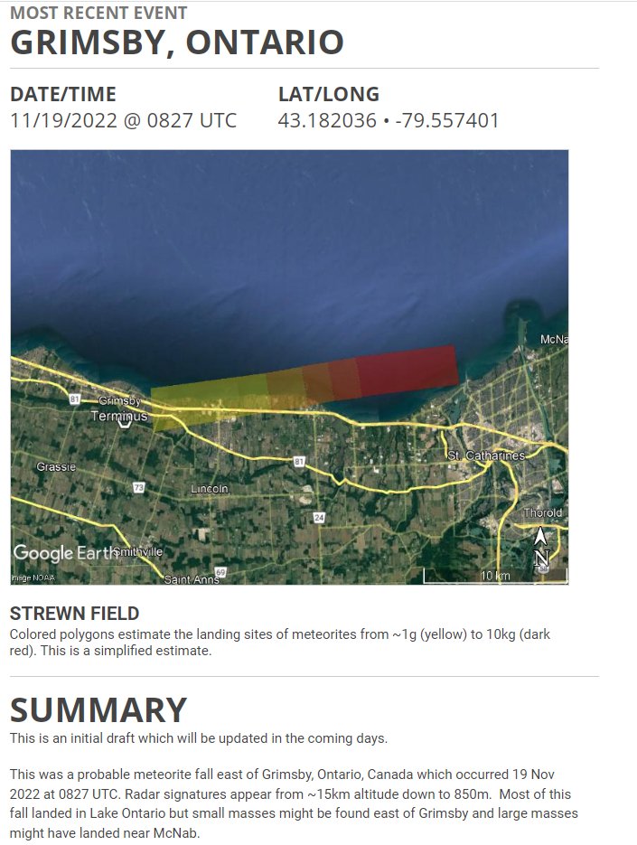 ووقعت معظمه هذه الأجسام، في بحيرة “أونتاريو” (كندا). مع احتمال سقوط أجزاء منها على اليابسة، في المنطقة بين مدينتي “غريمسبي” و “ماكناب”، في البلد نفسه.