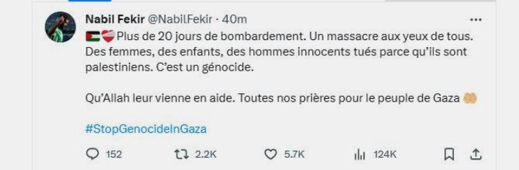 نشر اللاعب الدولي الفرنسي السّابق ذو الأصول الجزائرية نبيل فقير سهرة السبت، تغريدة في منصّة التواصل الاجتماعي “تويتر”، ساخطة على الصّهاينة.