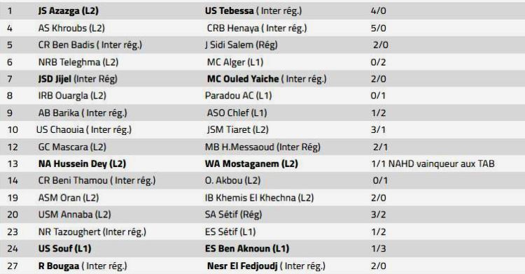 نتائج مقابلات كأس الجزائر