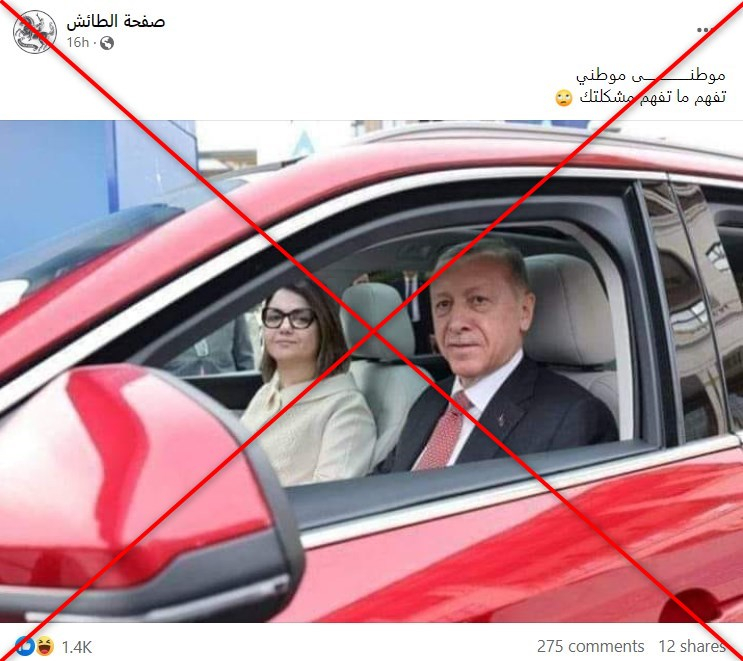 تظهر الصورة الرئيس التركي إلى جانب من يبدو أنّها وزيرة الخاجيّة الليبيّة داخل سيّارة حمراء، وجاء في التعليق المرافق لها: “موطني موطني تفهم ما تفهم مشكلتك”.