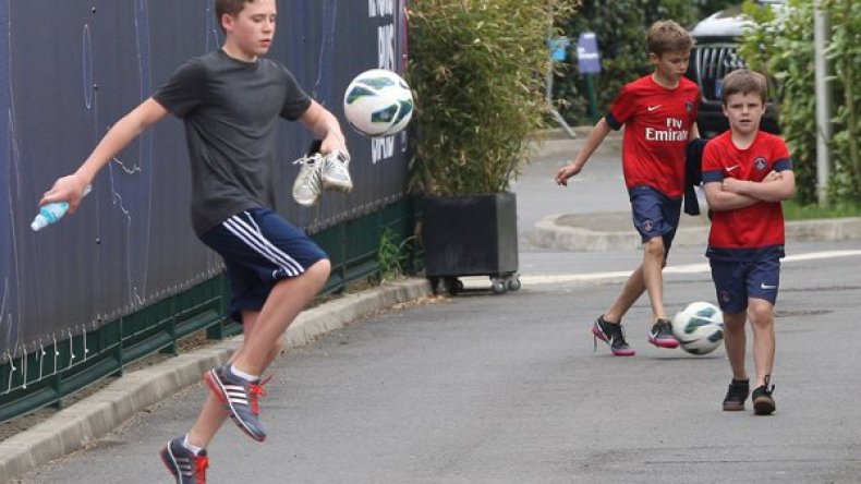 إبن بيكهام يداعب الكرة