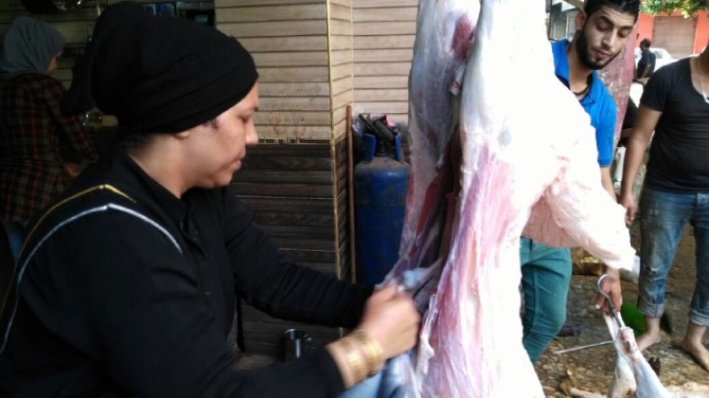 نساء يسلخن الأضحية ورجال يقطّعون اللحوم بمساعدة اليوتوب