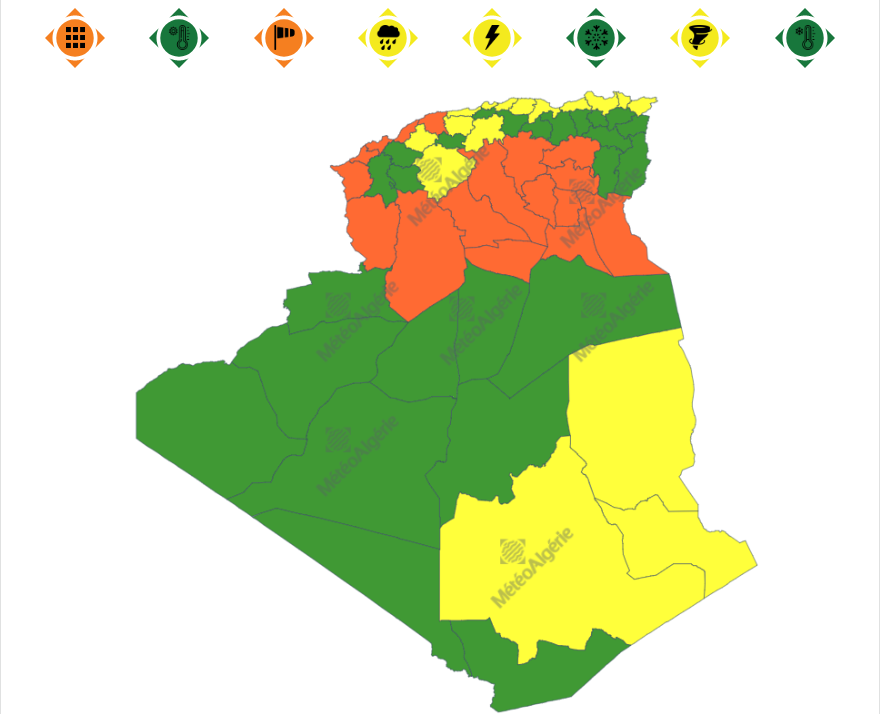 أفادت النشرية أن الولايات المعنية بالأمطار هي :عين تيموشنت، وهران ،مستغانم، الشلف،غليزان، عين الدفلى، المدية، تيبازة، الجزائر العاصمة، بومرداس،تيزي وزو ،بجاية ،جيجل ،سكيكدة ،عنابة والطارف.