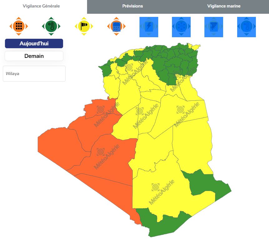 وحسب تنبيه من المستويين الأول والثاني فإن الولايات المعنية بتساقط الأمطار هي: الوادي، تقرت، ورقلة، إليزي، عين صالح، المنيعة، تيميمون، غرداية، الأغواط، تيارت، البيض، النعامة، سعيدة، سيدي بلعباس، الجلفة، بني عباس، بشار، تندوف، أدرار، برج باجي مختار.