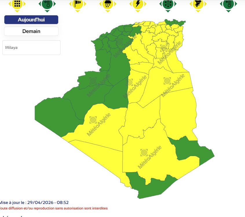 وستكون هذه النشرية سارية بداية من صبيحة اليوم الأربعاء إلى غاية يوم الخميس.