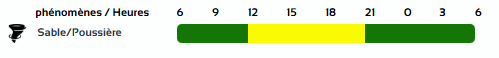 وفي نشرية أخرى، من المستوى الأول باللون الأصفر على خريطة اليقظة، ستجتاح الزوابع الرملية ولايات: تيميمون، بني عباس، أدرار وعين صالح من الساعة 12 ظُهرا من اليوم الثلاثاء لغاية الساعة التاسعة مساءً من نفس اليوم.