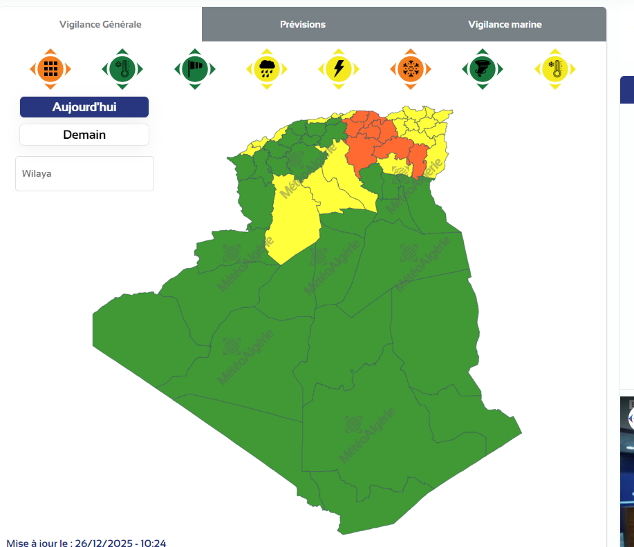 من جهة أخرى، نبه الديوان من تساقط ثلوج يصل سمكها إلى 15 سم عبر ولايات: سطيف، باتنة، خنشلة، البويرة، تيزي وزو، بجاية، برج بوعريريج والمسيلة.