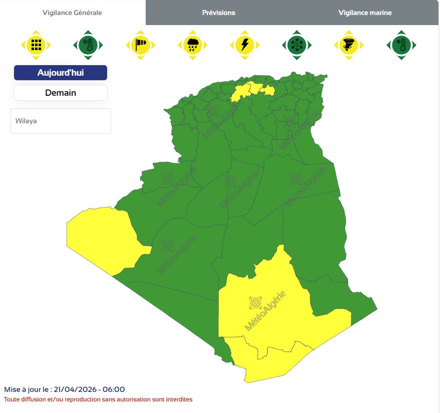 وستكون هذه النشرية سارية من الساعة 3 زوالا إلى غاية 9 ليلان حسب ما أفادت به مصالح الديوان.