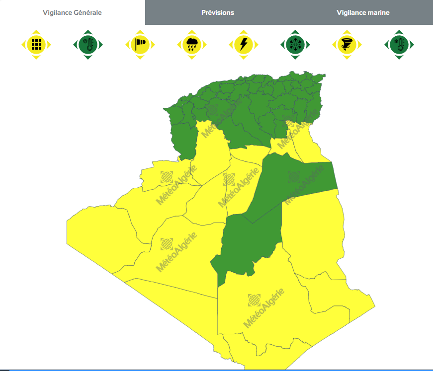 وحسب تنبيه من المستوى الأول جاء باللون الأصفر فإن الولايات المعنية بتساقط الأمطار هي: البيض، نعامة، بشار، بني عباس، تيميمون وأدرار.