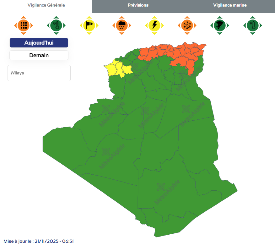 وحسب تنبيه لمصالح الأرصاد الجوية جاء بالمستويين الأول والثاني فإن الولايات المعنية بتساقط الأمطار هي: تيبازة، الجزائر، البليدة، البويرة، شمال المدية، بومرداس، تيزي وزو، بجاية، شمال سطيف، جيجل، سكيكدة، عنابة، الطارف.