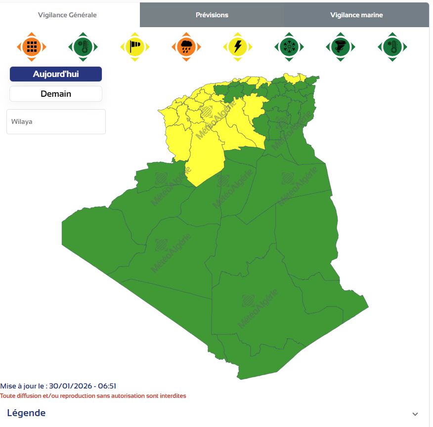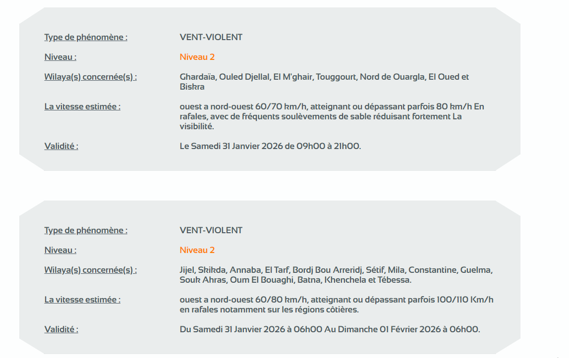 تبدأ صلاحيتها من يوم غد السبت، على الساعة 06:00 إلى يوم الأحد، 1 فيفري 2026 على الساعة 06:00.