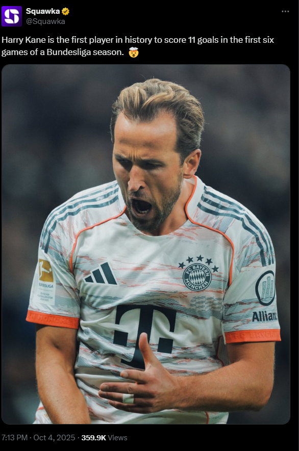 حقق المهاجم الإنجليزي هاري كين رقما قياسيا في الدوري الألماني، بعدما قاد بايرن ميونخ للفوز بثلاثية نظيفة على مضيفه أينتراخت فرانكفورت في الجولة السادسة.
