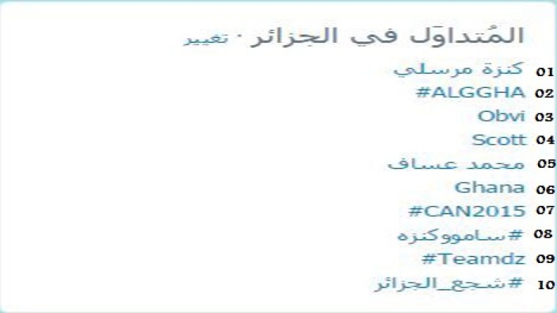 إحتل هاشتاق ” # شجع_الجزائر ” الذي أطلقه موقع “الشروق أونلاين” قبل انطلاق فعاليات كان 2015 بغينيا الإستوائية المرتبة العاشرة إلى غاية كتابة هذه الأسطر ضمن أحسن الأوسمة الأكثر تداولا في الجزائر عبر شبكات التواصل الإجتماعي يتصدرها موقع تويتر.