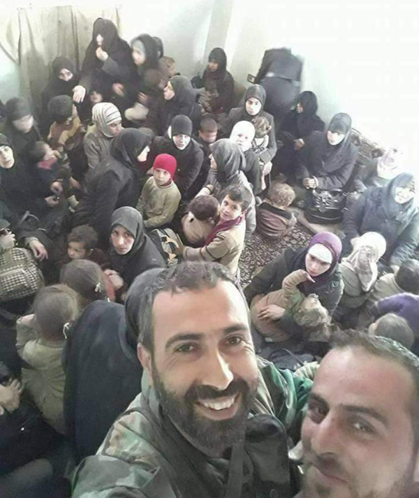 وأثار الفيديو انتقادات واسعة، إلى جانب صورة ظهر فيها جنديان من قوات الأسد وهما يلتقطان صورة “سيلفي”، ووراءهما عدد من النساء والأطفال الذين بدا عليهم الإنهاك، وكان الجنديان يبتسمان للكاميرا، فيما حاولت بعض النساء تغطية وجوههن.