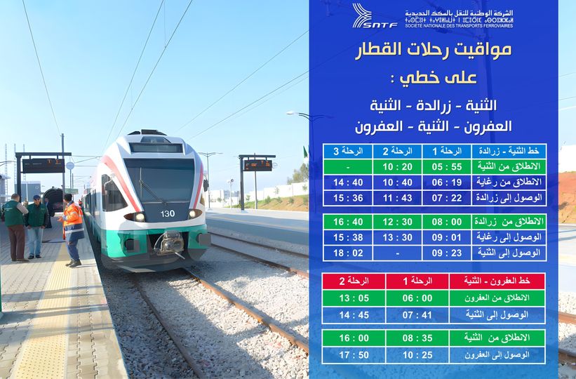وذكرت الشركة في بيان لها، أن مواقيت سير القطارات على خط الثنية – زرالدة ، خط العفرون – الثنية، ستكون كما هو موضح في جدول مواقيت الرحلات المبين أدناه: