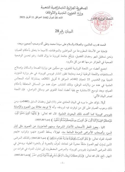 وكشفت اللجنة، الأحد، في بيان لها بعد اجتماعها بممثلين عن وزارة الصحة أن اللقاح غير مغذ واستعماله في نهار رمضان لا يفسد الصوم.