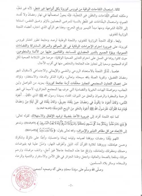 في ليبيا قال المفتي العام، فضيلة الشيخ الدكتور الصادق بن عبد الرحمن الغرياني، إن الشرع أباح لكل مريض يؤثر عليه المرض أن يفطر في رمضان، ومن ذلك من أصيب بوباء كورونا.
