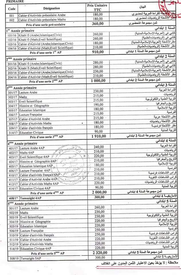 وأرسلت وزارة التربية الوطنية عبر مديرياتها الولائية قائمة الكتب المدرسية مرفوقة بالسعر بالنسبة للتلاميذ المتمدرسين في الطور الإبتدائي.