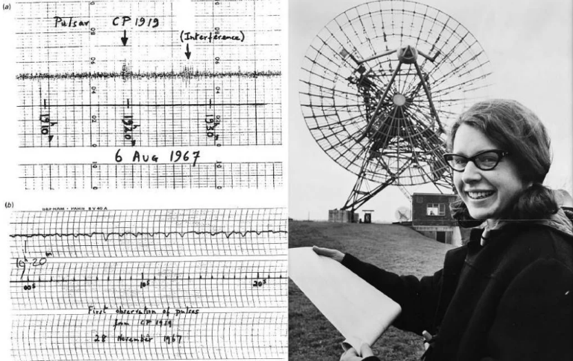 كانت جوسلين بيل بورنيل -البالغة من العمر 24 عاما- طالبة دراسات عليا في جامعة كامبريدج وباحثة رائدة في مجال الفيزياء الفلكية، وفي عام 1967، حققت اختراقا كبيرا لأنها رأت علامات غريبة في ذبذبات اللاسلكي للتلسكوب.