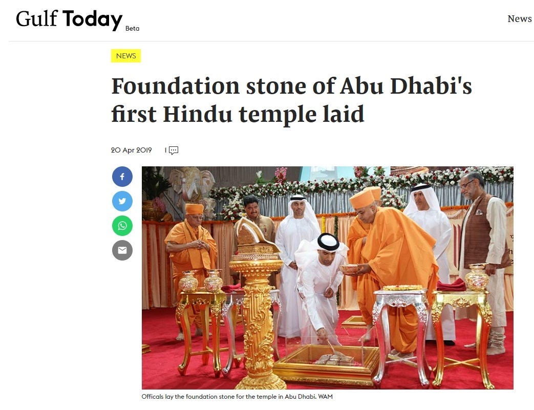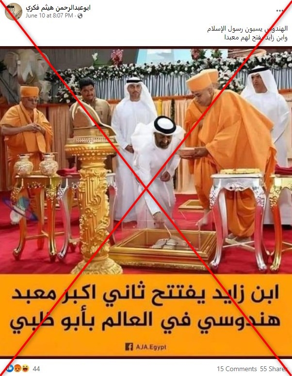 وفي 14 جوان 2022، تداول مستخدمون على مواقع التواصل الاجتماعي صورة لما يفترض أنه رئيس دولة الإمارات محمد بن زايد، وهو يضع حجر الأساس لمعبد هندوسي في أبو ظبي.