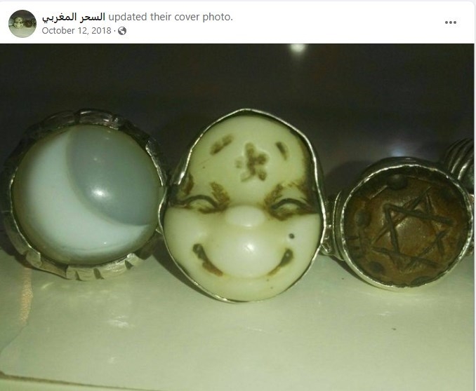 يظهر في الصورة ما يبدو أنها حليّ تحمل رموزاً من بينها نجمة ذات أضلاع ستّة.