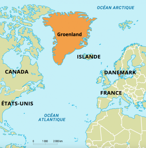 غرينلاند هي أكبر جزيرة في العالم، وتبلغ مساحتها 2 مليون كيلومتر مربع، وهي تتمتع بالحكم الذاتي في ظل السيادة الدنماركية حيث أن لها حكومتها وبرلمانها.