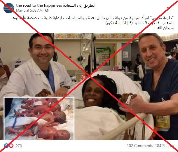 انتشرت على مواقع التواصل الاجتماعي صور قيل بأنها للمرأة المالية التي أنجبت تسعة توائم في المغرب، لكن تقريرا حول صحة الأخبار نفى أن تكون كذلك.