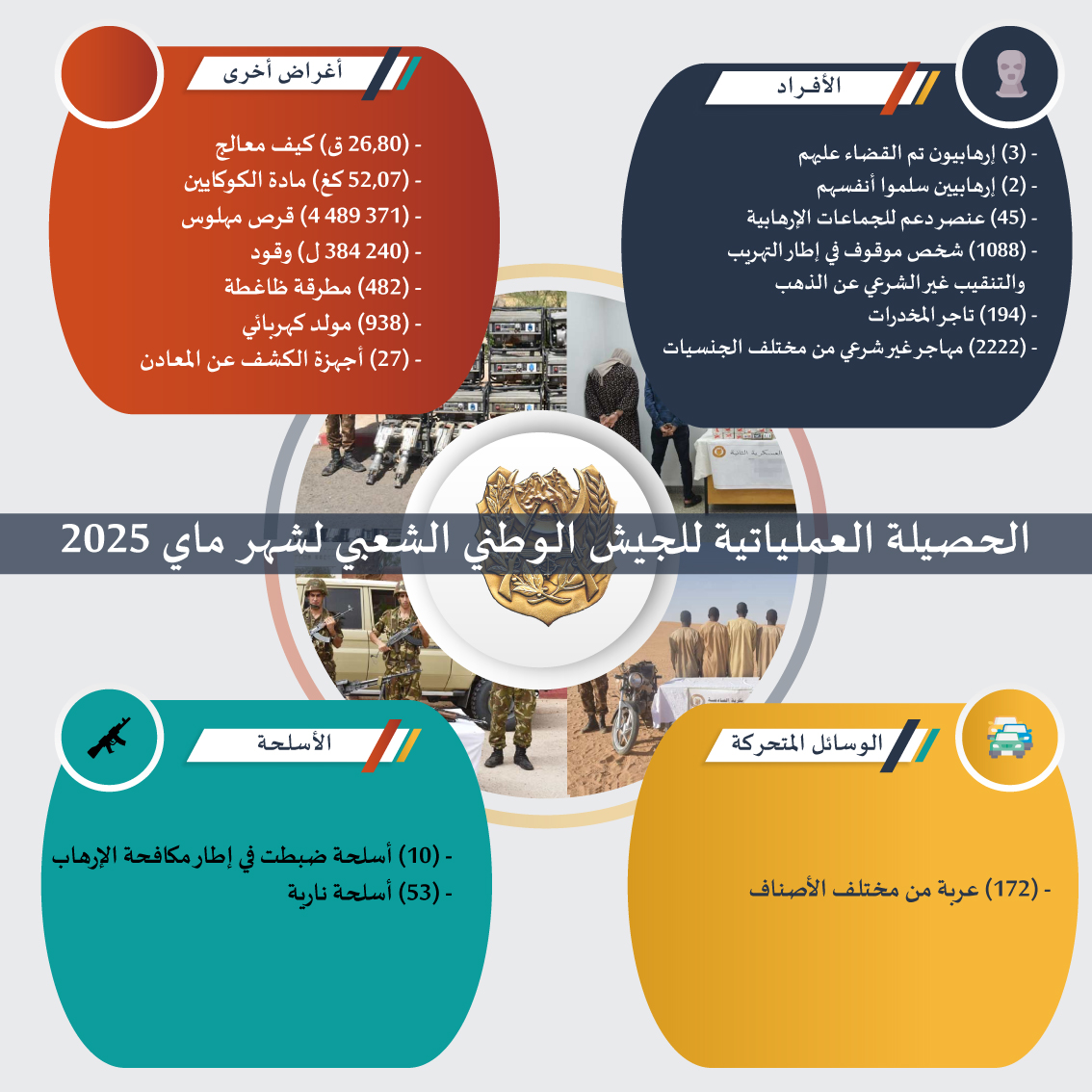هذه هي الحصيلة العملياتية للجيش الوطني الشعبي لشهر ماي