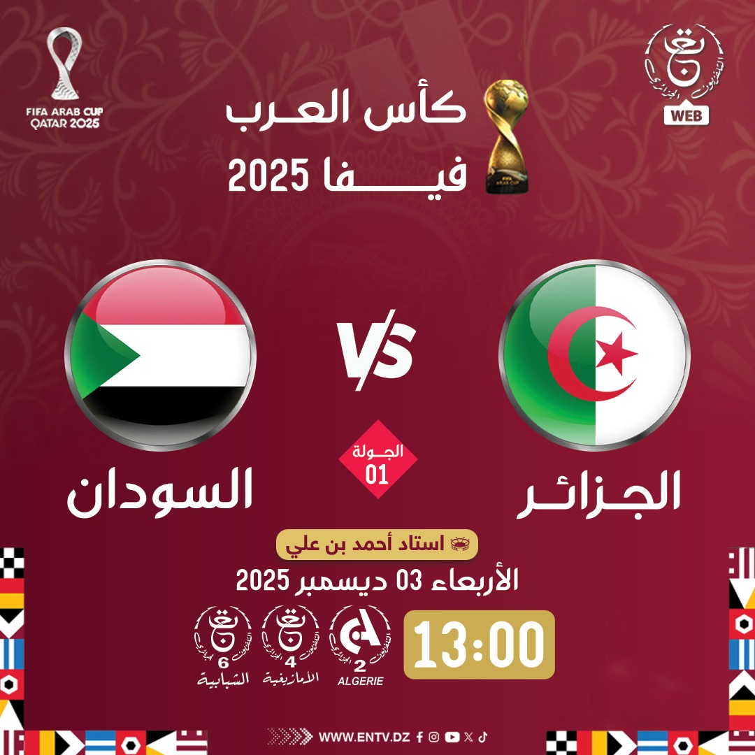 يستهل المنتخب الجزائري، حملة الدفاع عن لقب بطولة كأس العرب، بمواجهة منتخب السودان.