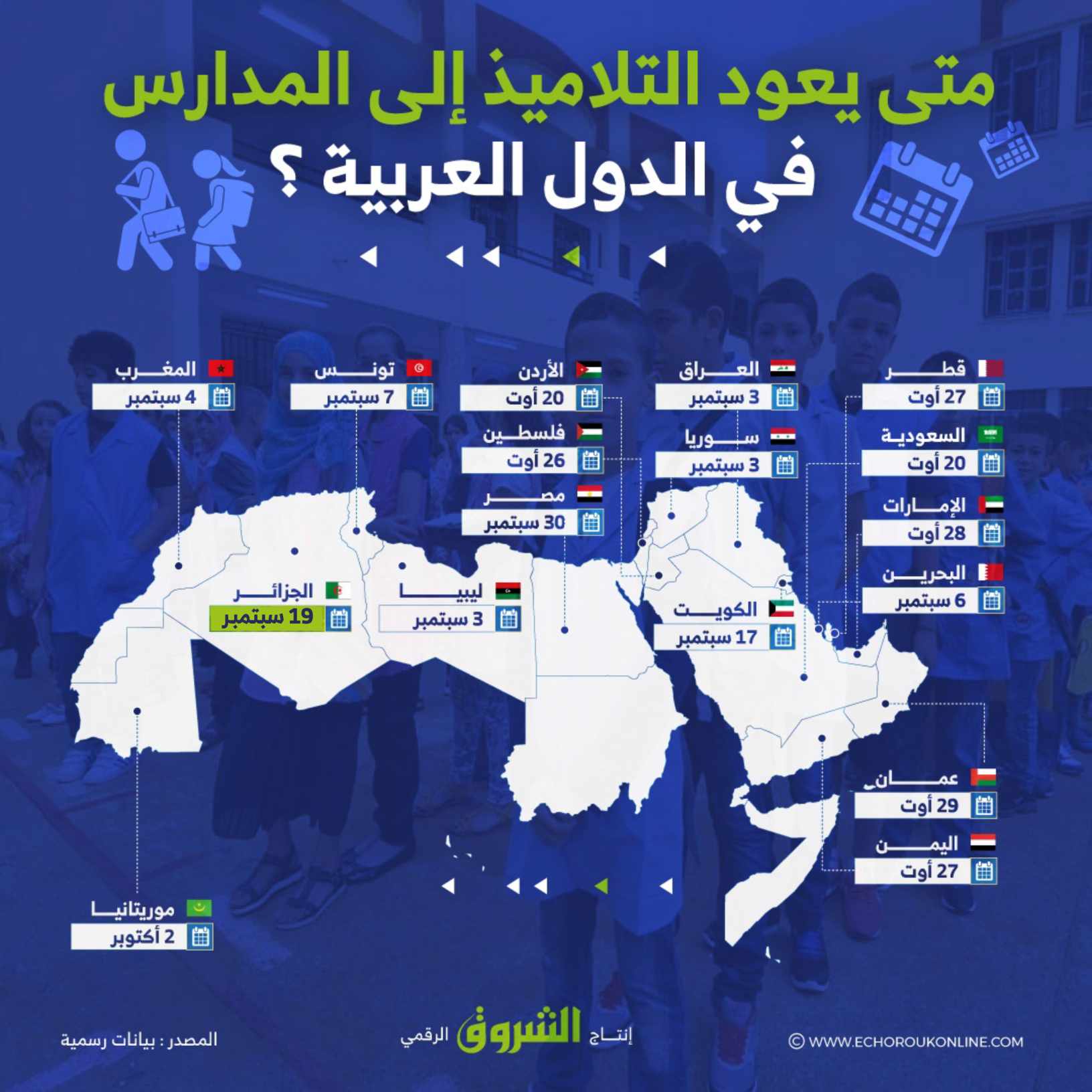 هذه هي مواعيد عودة التلاميذ إلى المدراس في الدول العربية