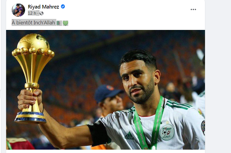 وكتب محرز: “عن قريب إن شاء الله”، وأرفق عبارته بعلم الجزائر وأمامه وقلب أخضر.