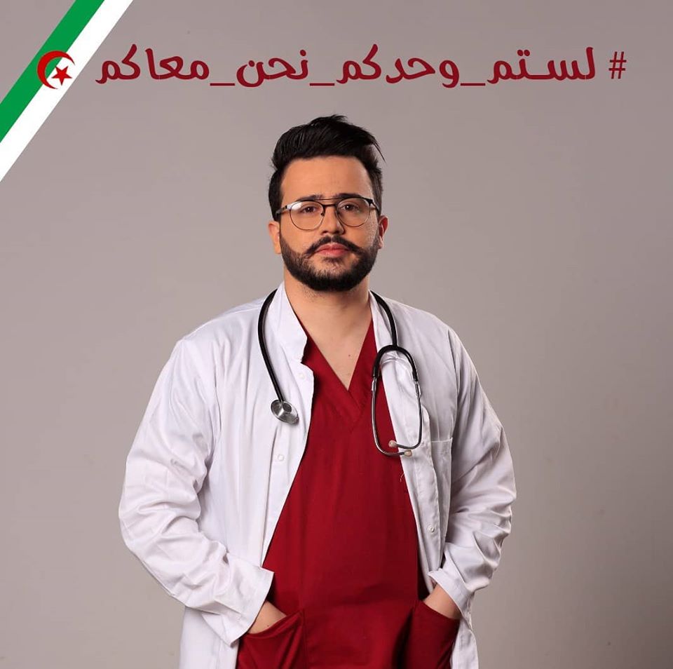 بينما ظهر الممثل والاعلامي زهر الدين جواد فى صورة جديدة له وهو مرتدي بدلة طبيب ، يطالب الناس بالمكوث فى منازلهم خلال الفترة الحالية بسبب تفشى فيروس كورونا,كما يطالب كل الفنانين والاعلاميين بنشر الوعي والتفاءل عبر حسابتهم , وعن نشاطه بالوقت الراهن يحدثنا زهر الدين قائلا / حاليا أقوم بحملة لرفع من معنويات خط دفاعنا الأول و جيشنا الأبيض لكل العاملين في قطاع الصحة دون نسيان عمال النظافة ،رجال الأمن ،الحماية المدنية و كل من يحارب ضد هذا الفيروس بتحضير فيديو مساندة و دعم من مشاهير الجزائر و حتى من مواطنين الهدف من هذا إكتساح مواقع التواصل الإجتماعي و الإعلام لرفع معنويات إخواتنا العاملين في مختلف الأسلاك الذين يحاربون هذا الوباء و لنثبت لهم انهم ليسوا وحدهم نحن معاهم و أيضا لنثبت للعالم أنا الجزائريين متحديين و خاوة في الظروف الصعبة بهاشتغ #لستم_وحدكم_نحن_معاكم ،مضيفا عبر حسابه بالفيس بوك : لو كان بإمكان المساعدة و المساندة أكثر من الفيديو لفعلنا ذلك ، أتمنى من الجميع المشاركة و لو بمنشور لدعم خاوتنا من يؤمن بالفكرة ينشرها على أوسع نطاق .