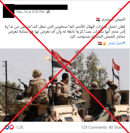 تداول رواد مواقع التواصل الاجتماعي منشورا يدعي أصحابه أن الجيش المصري أعلن أن سيارات الإسعاف الفلسطينية التي تدخل مصر تابعة له وسيرد على كل من يتعرض لها.