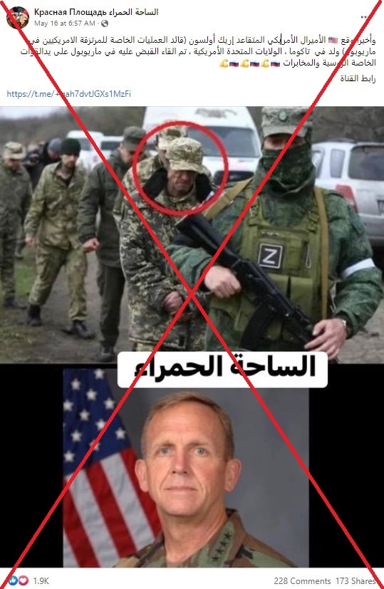 مع تشديد القوات الروسيّة الخناق على جيوب المقاومة الأوكرانيّة في مدينة ماريوبول، ظهرت على صفحات وحسابات على مواقع التواصل الاجتماعي صورة قيل إنها تُظهر اعتقال ضابط أميركي رفيع هناك اسمه إريك ولسون.
