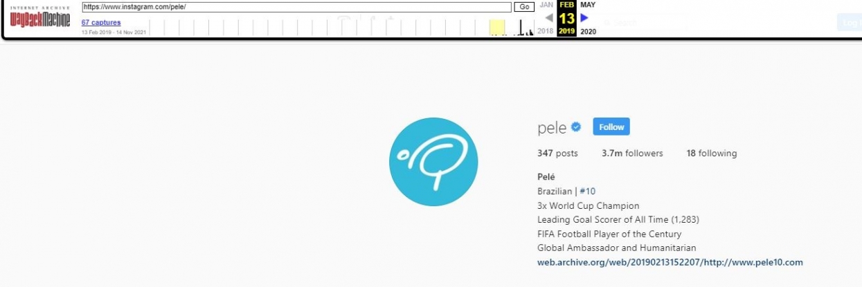 تظهر نسخ مأرشفة من حساب بيليه (81 عاماً) على إنستغرام تعود لأعوامٍ سابقة أنّ الرقم هو نفسه لم يتغيّر.