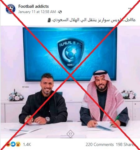 تداول ناشطون عبر مواقع التواصل الاجتماعي صورة قيل إنها لمهاجم منتخب الأورغواي لويس سواريز إلى جانب رئيس الهلال زاعمين أنّها دليلٌ على انتقال اللاعب إلى النادي السعوديّ.