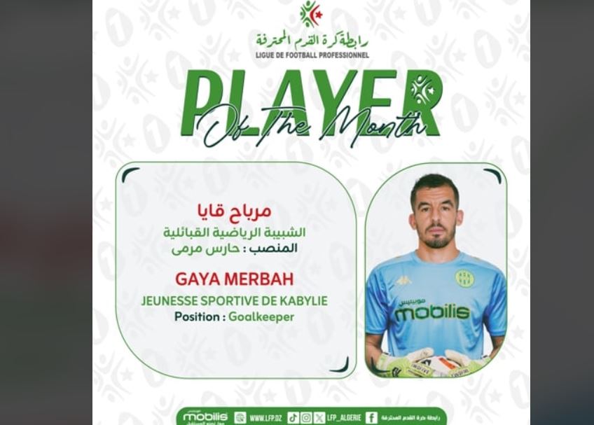 ووفقا لِرابطة الكرة المحترفة التي تمنح هذه المكافأة الرمزية، فالأمر يتعلّق بِحارس المرمى غايا مرباح، حامي عرين نادي شبيبة القبائل.