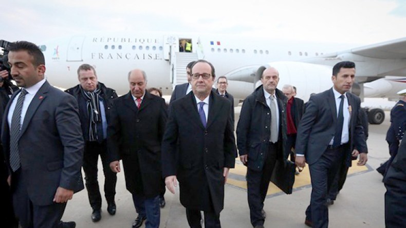 وصل الرئيس الفرنسي فرانسوا هولاند إلى العراق، يوم الاثنين 2 جانفي، للاطلاع على سير الحرب ضد تنظيم “داعش” و زيارة القوات الفرنسية العاملة في العراق.