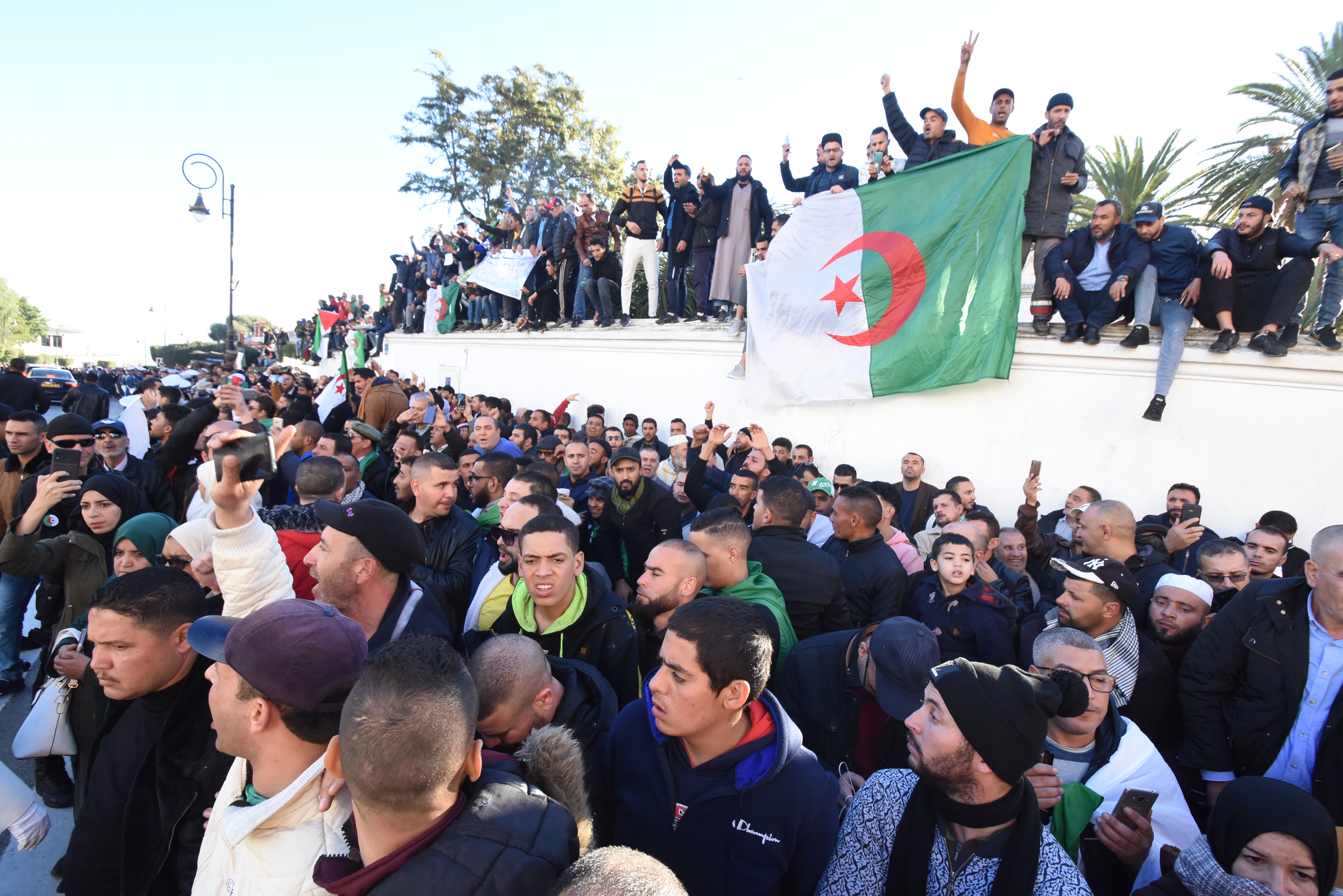 الجزائريُّون تدفقوا على العاصمة من 48 ولاية، منذ ساعات الصباح الأولى لنهار أمس، وبدأوا في التجمهر بالشوارع المحاذية لقصر الشعب بعد صلاة الفجر مباشرة.