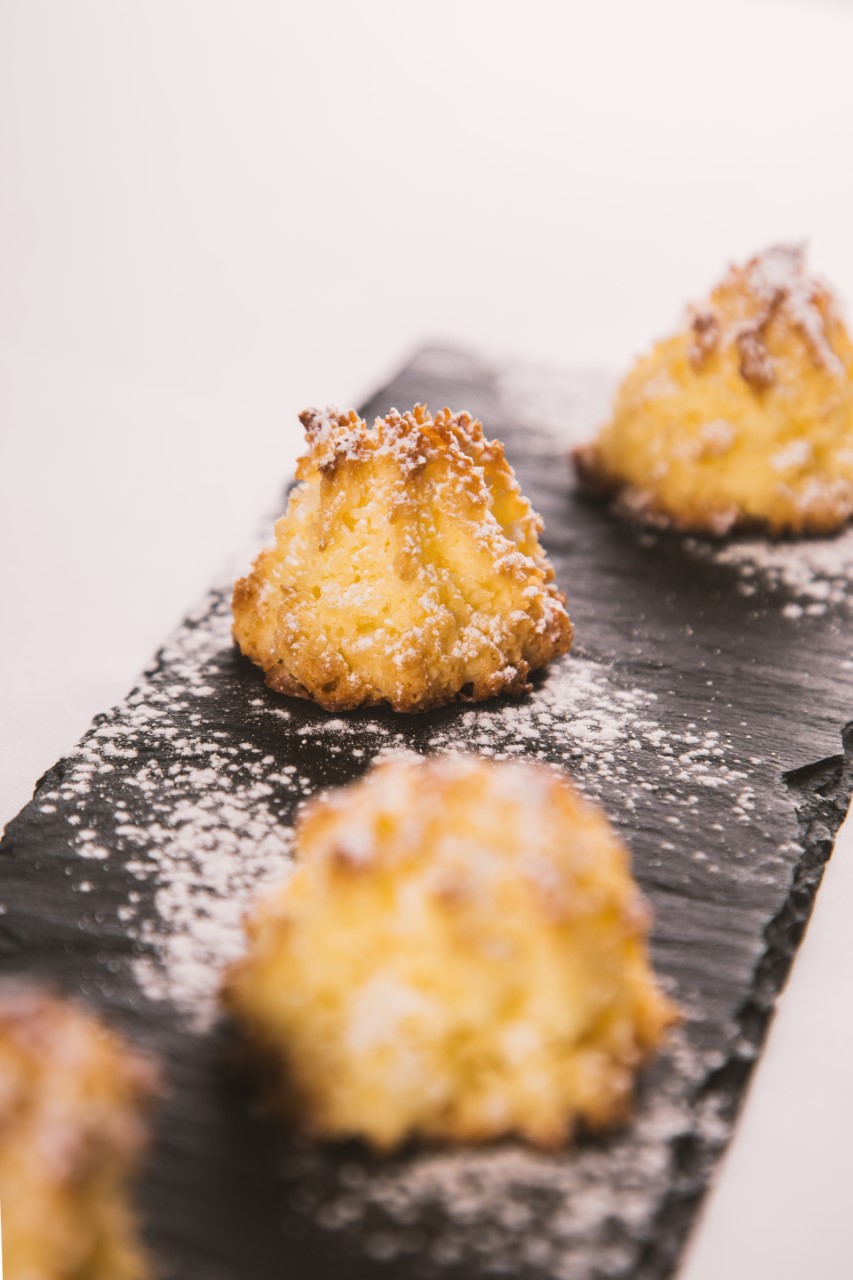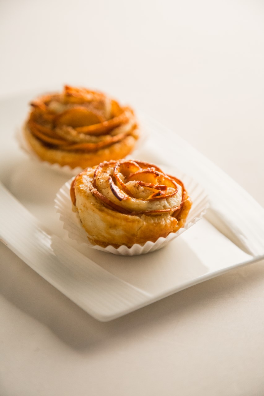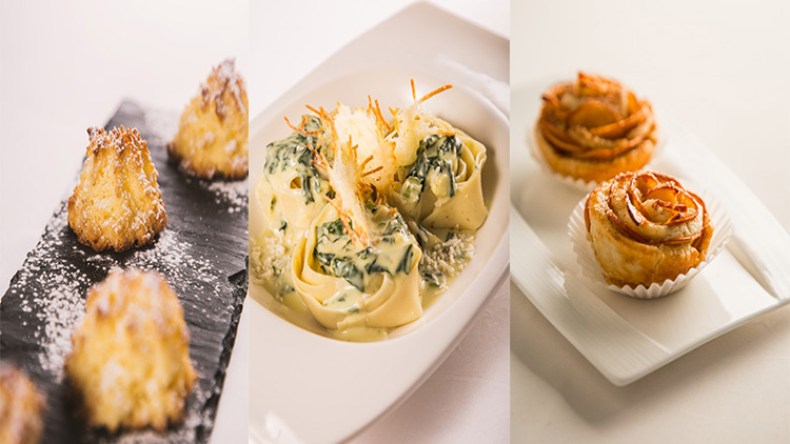 وردات التفاح – عجائن بالسبانخ وصلصة الجبن – حلوى جوز الهند