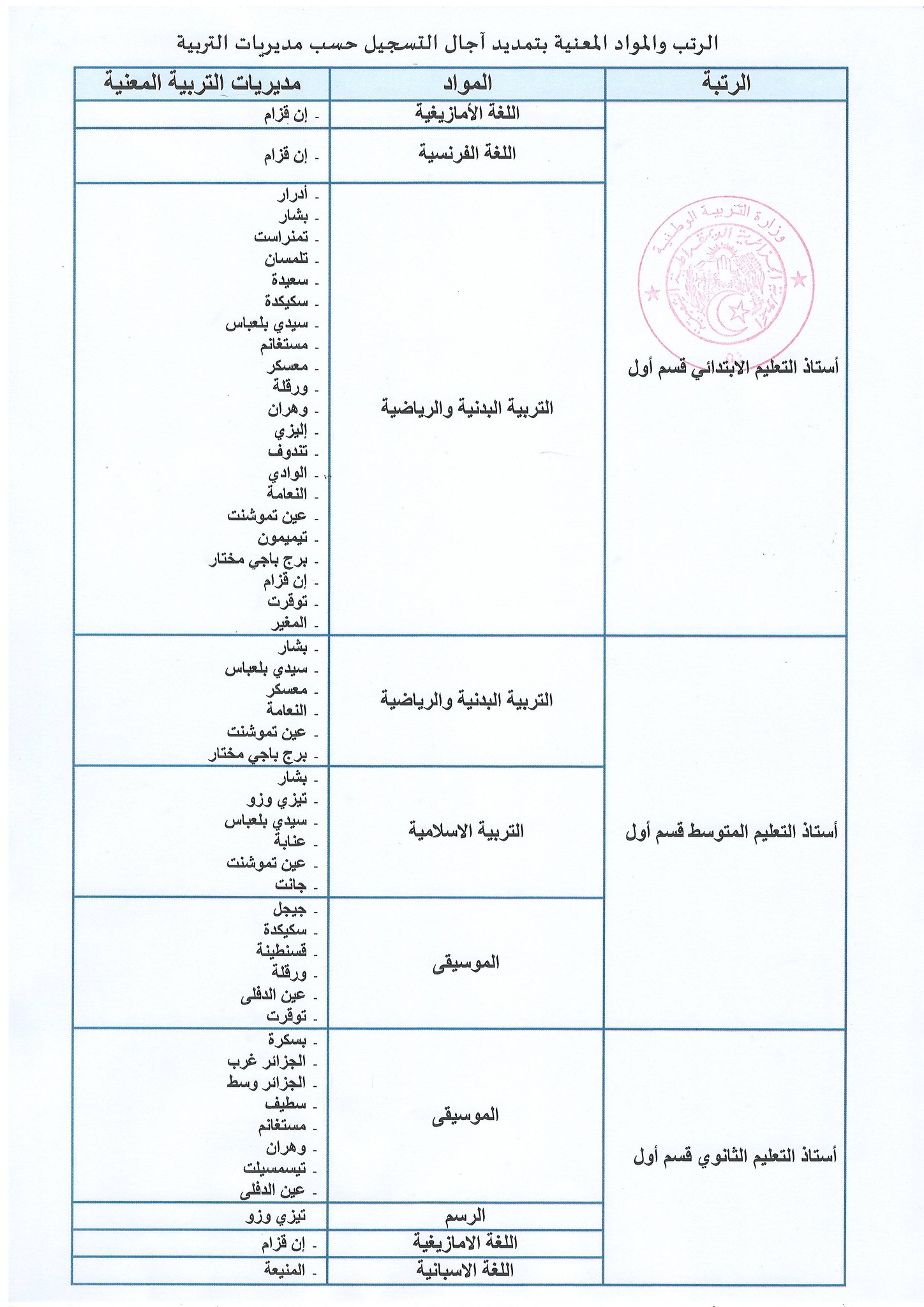 المواد ومديريات التربية المعنية بالتمديد الاستثنائي