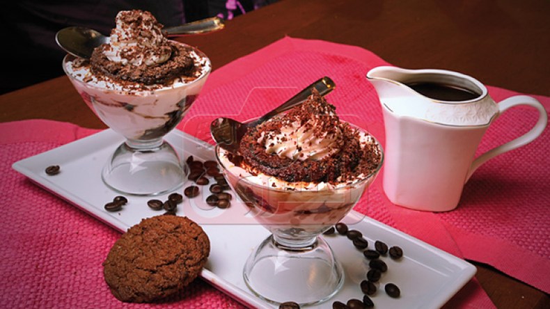 أغمسي حبات البسكويت في القهوة وضعيها أسفل الأكواب ثم أفرغي فوقها طبقة من الكريمة، كرّري العملية بطبقة من البسكويت المغموس في القهوة ثم طبقة من الكريمة. زيني السطح بالكاكاو والشوكولاطة المبشورة .