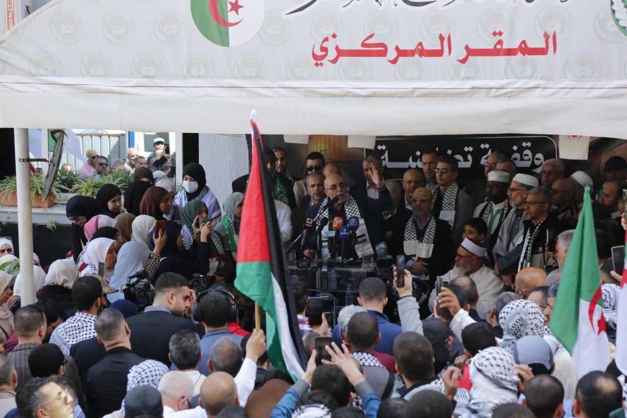 نظمت حركة مجتمع السلم يوم الجمعة، وقفة تضامنية أمام مقرها المركزي في العاصمة، مساندة لنضال وصمود الشعب الفلسطيني.