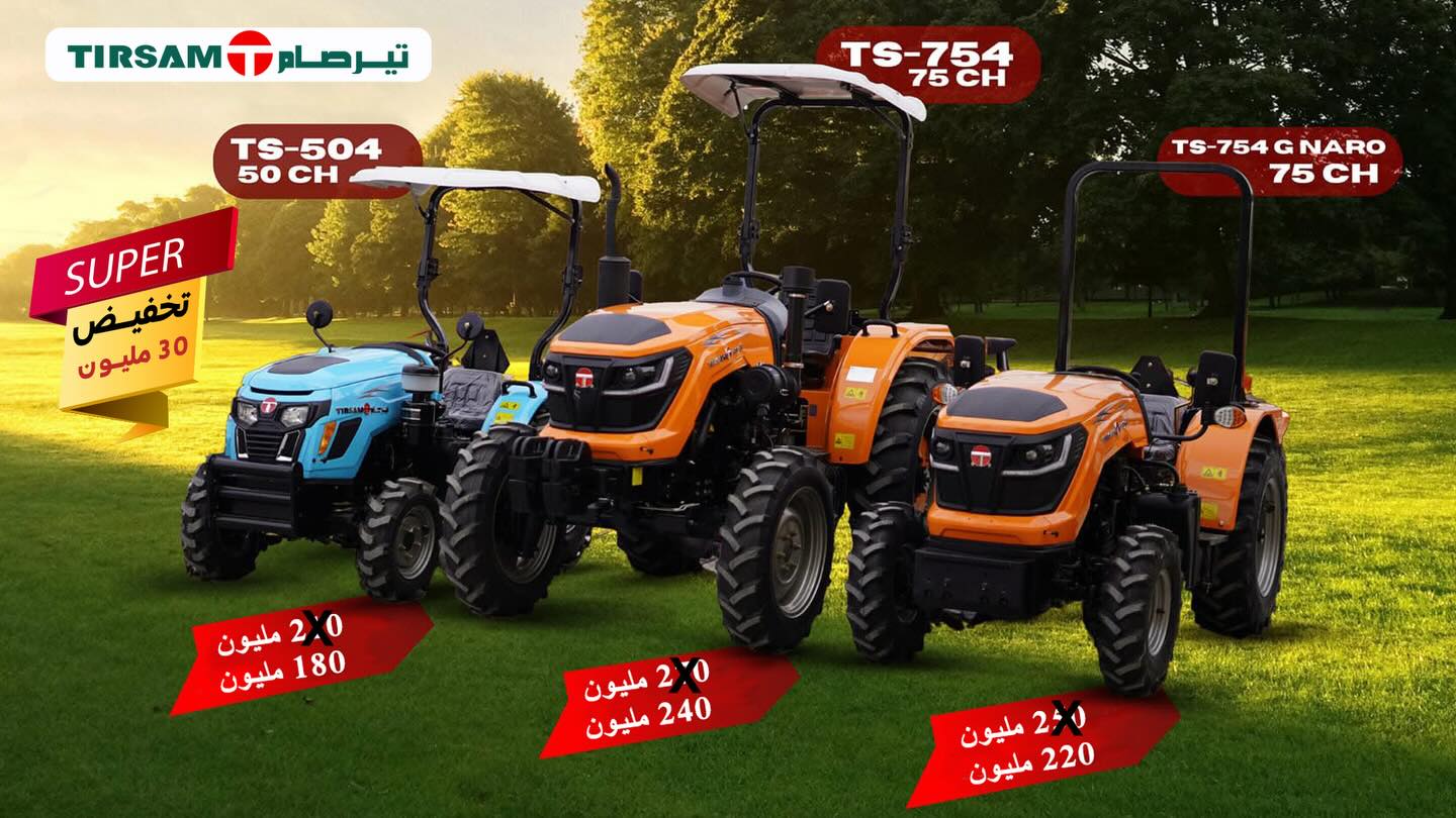 تواصل شركة تيرصام عروضها التخفيضية، حيث أعلنت عن تخفيض جديد على الجرّارات بخصومات تصل إلى 30 مليون سنتيم، في إطار حملة ترويجية موجهة لدعم اقتناء العتاد الفلاحي وتحفيز النشاط الزراعي.