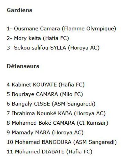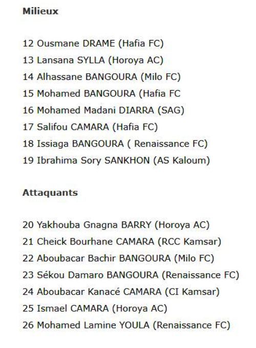 أعلن مدرب منتخب غينيا كوناكري للعناصر المحلية سليمان كامارا، الثلاثاء، عن قائمة أوّلية تضمّ 26 لاعبا.