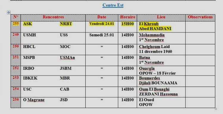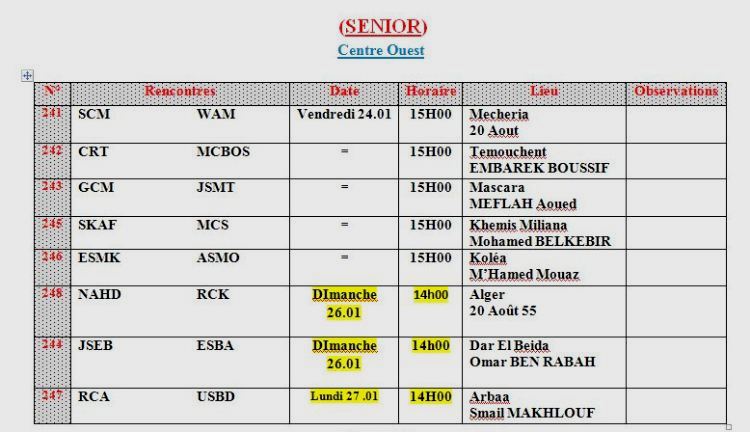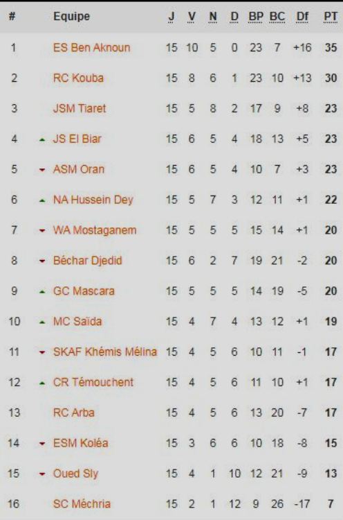 وجاءت لائحة المقابلات رفقة جدول الترتيب، على النحو التالي (المنشورات المدرجة أدناه).