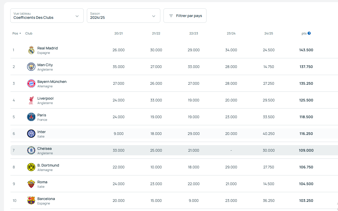 أعلن الاتحاد الأوروبي لكرة القدم “يويفا” عبر موقعه الرسمي عن التصنيف السنوي للأندية الأوروبية بعد نهاية موسم 2024-2025.