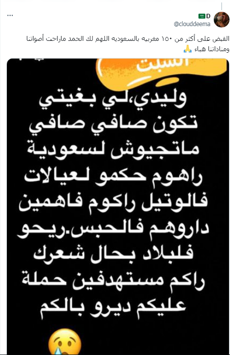 قامت الجهات المختصة في السعودية بإلقاء القبض على 150 مغربية🇲🇦 بتهم مختلفة أهمها #الدعارة #الشعوذة #تجارة_المخذرات#ترحيل_المغربيات_مطلب#ترحيل_المغربيات_مطلب2